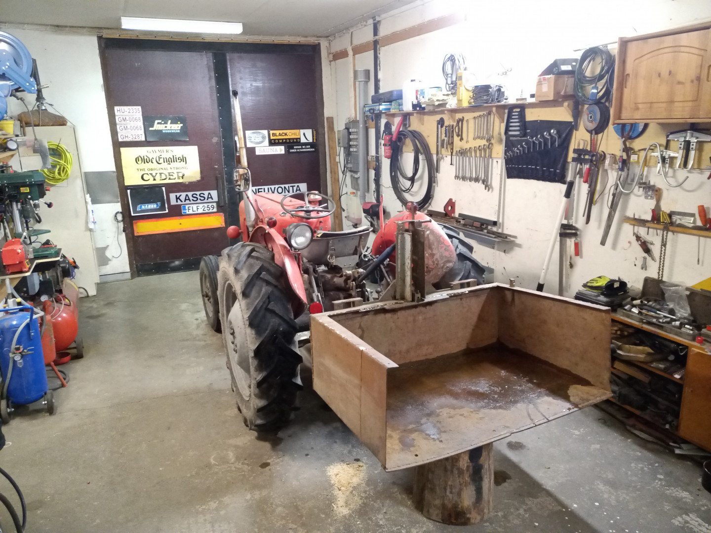 Nyt saa rattorin perään kiinni kaikki etukuormaajan värkit eli trukkipiikit ja kauhat sun muut :idea: